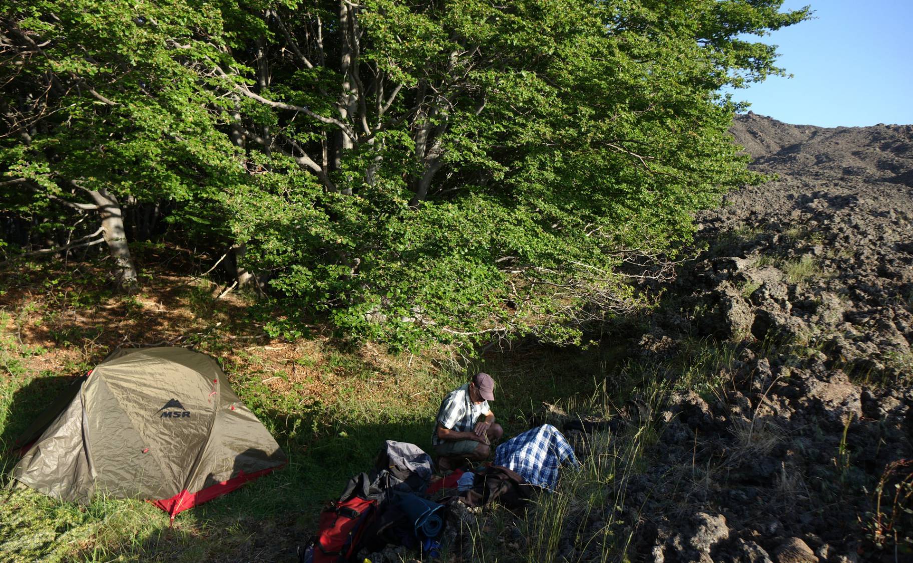 Das war ein traumhafter Zeltplatz an der Grenze von Wald und Lava.